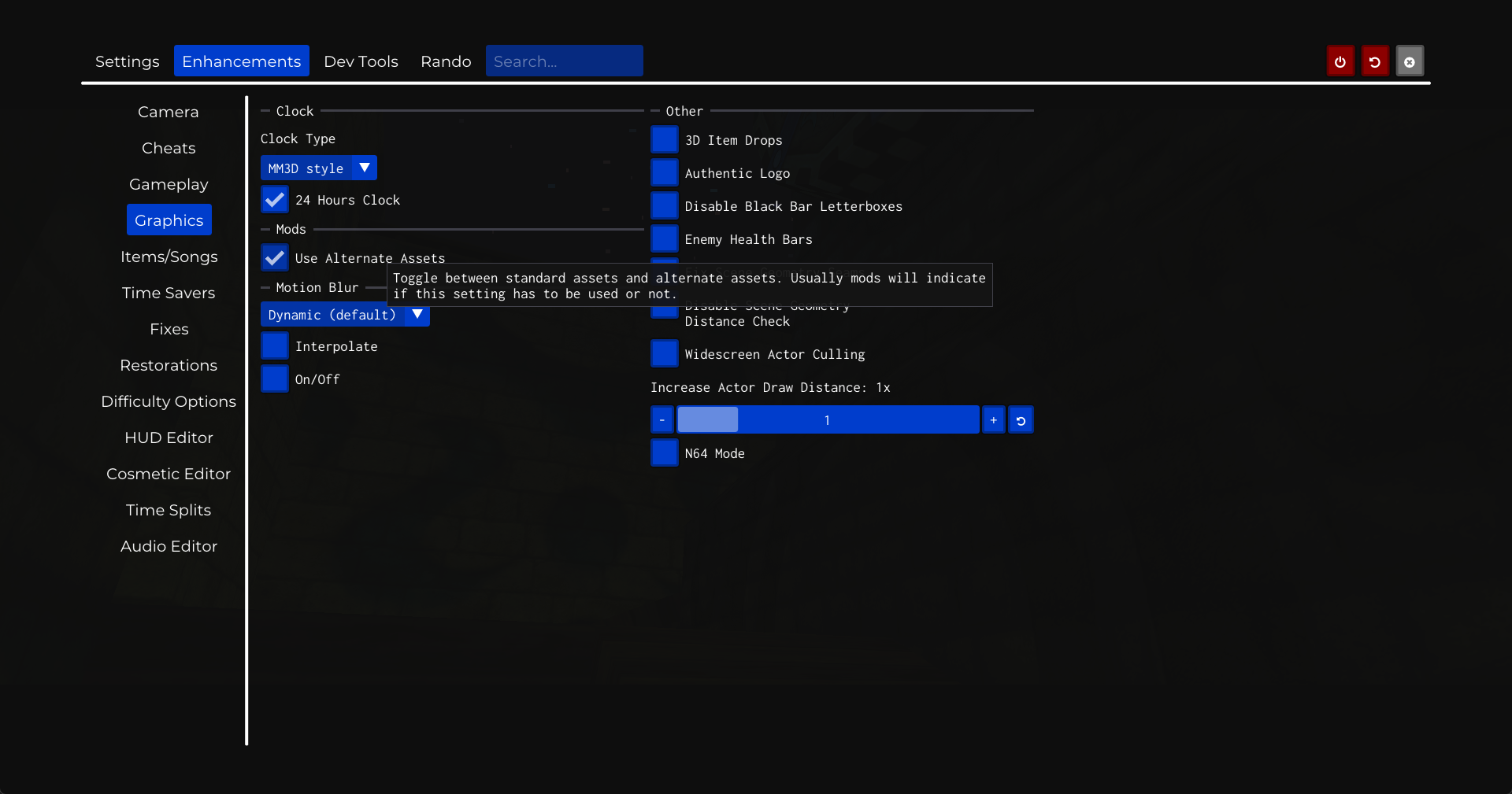 - Disable Draw Distance - Removes fog that the N64 needed for performance