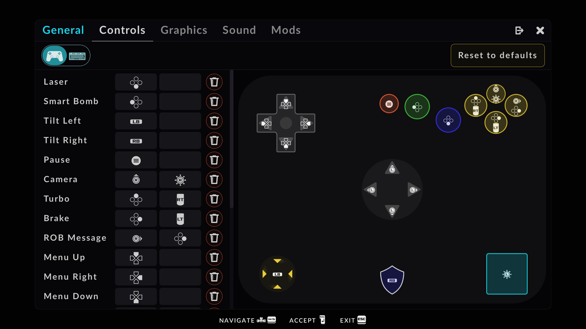 From the Settings menu, you can modify your controls.