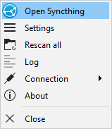 - When finished installing, right click the tray icon and click "Open SyncThing." SyncThing will open in a browser.