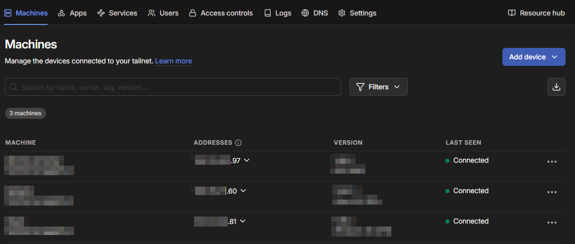 - Sign into Tailscale on each device you've installed it on. Each device should show up on the admin page for devices on Tailscale.